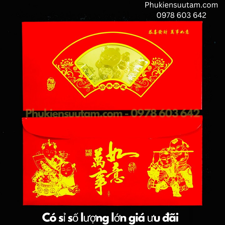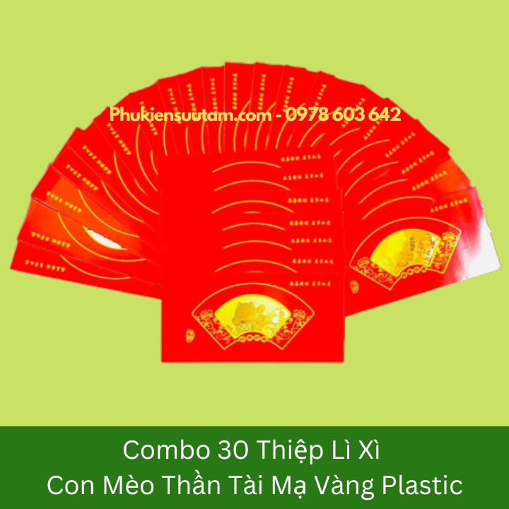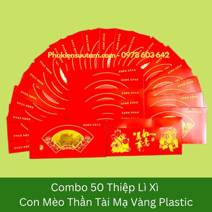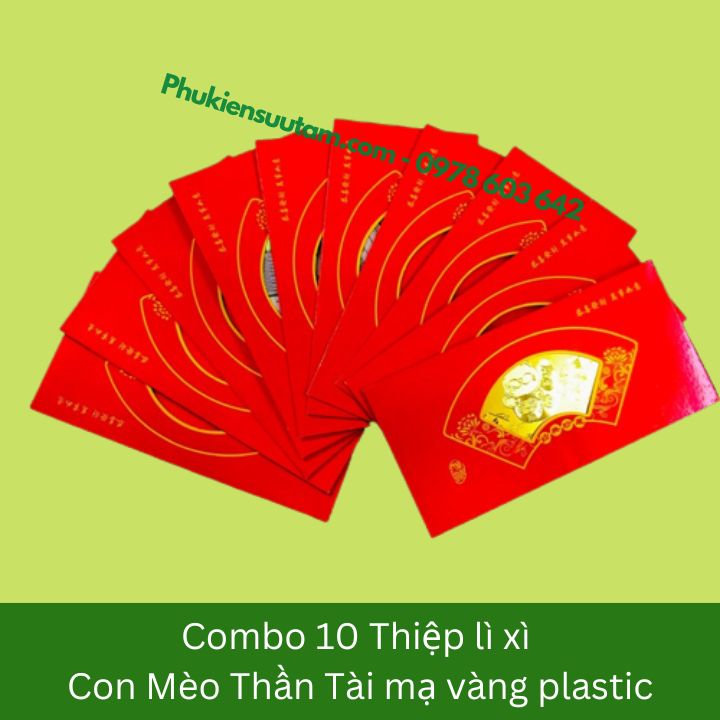 Đóng gói Sản Phẩm: 1x Thiệp lì xì con Mèo Thần Tài mạ vàng plastic.