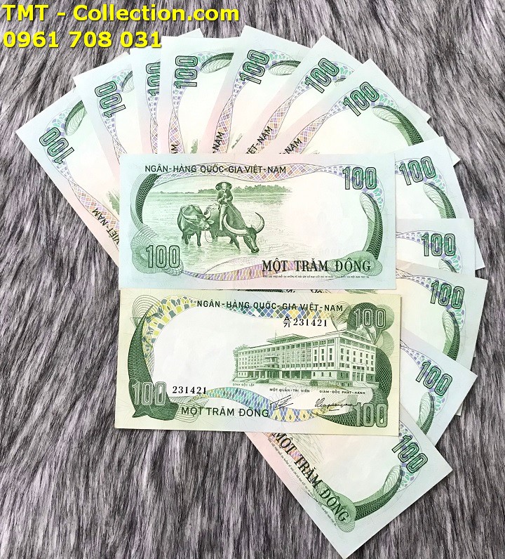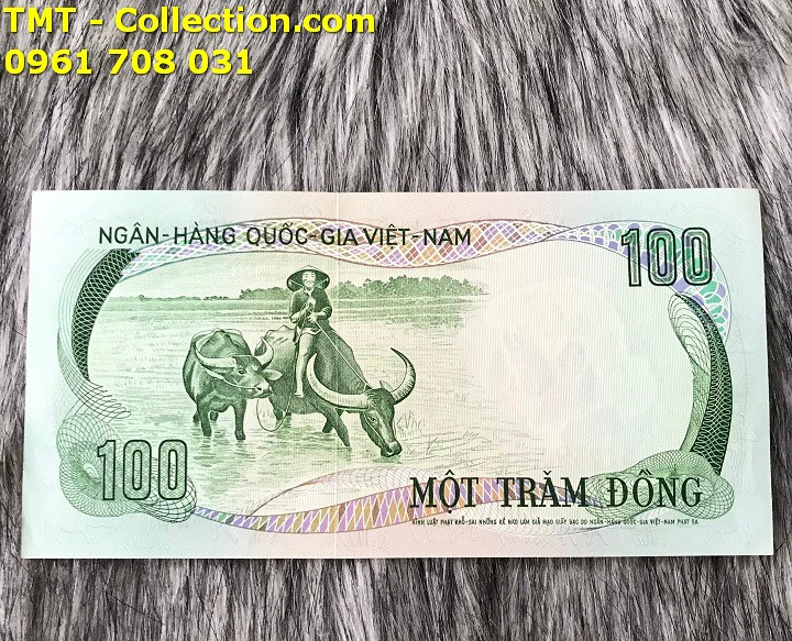Mô tả sản phẩm: Tiền 100 đồng Con Trâu Của Việt Nam là một tờ tiền do nhà nước VNCH phát hành vào năm 1972, hiện đã hết giá trị lưu hành. Tiền có mặt trước là hình Dinh Độc Lập. Mặt sau là hình một người nông dân đang chăn trâu trên cánh đồng.