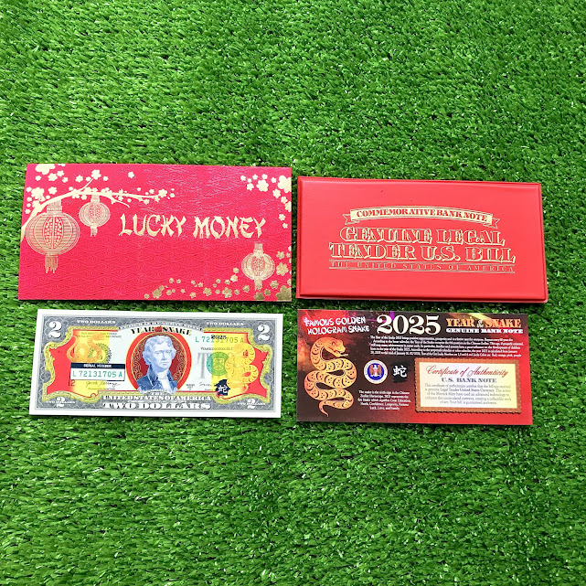 Tiền 2 USD Hình Con Rắn Mạ Vàng 2025 In Màu