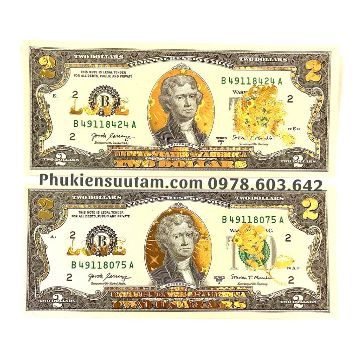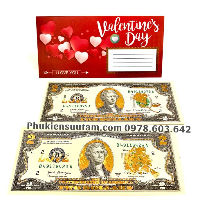 Tiền 2 USD Valentine Mạ Vàng 3D - Phukiensuutam.com