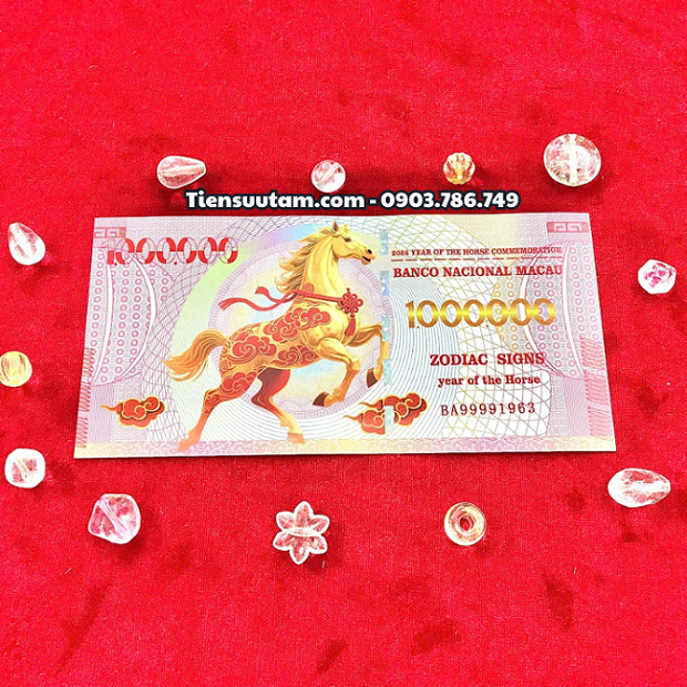Tờ Tiền Lì Xì 1 Triệu Đô La Macao Hình Con Ngựa 2026 Có thể ép nhựa, đóng khung hoặc đặt trong album sưu tầm. Khi đặt ở bàn làm việc, quầy thu ngân, két sắt hoặc phòng khách, vật phẩm giúp kích hoạt năng lượng hành động, tăng tài khí và vận may.