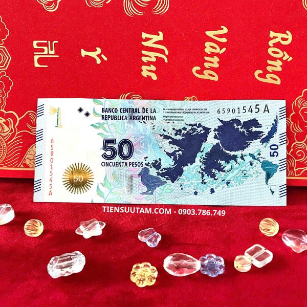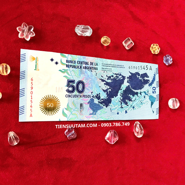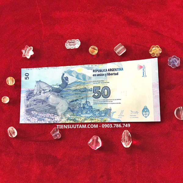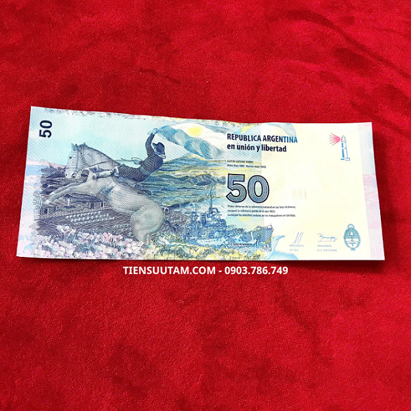 Tờ Argentina 50 Pesos 2015 UNC được phát hành bởi Ngân hàng Trung Ương Cộng Hòa Argentina (Banco Central de la República Argentina).