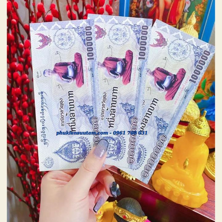 Đặc Điểm Nổi Bật: Tiền Lưu Niệm 1 Triệu Baht Hình Phật Chùa Vàng Và Linh Phù May Mắn Thái Lan có chất liệu giấy. Mặt trước tờ tiền là hình của chùa Wat Traimit, còn có tên tiếng Việt là Chùa Phật Vàng, là một ngôi chùa nổi tiếng ở Bangkok, Thái Lan nhờ vẻ đẹp độc đáo, lịch sử của nó, và nhờ pho tượng Phật bằng vàng nguyên khối rất lớn cùng với 1 hình Linh Phù May Mắn Thái Lan vốn nổi tiếng rất linh thiêng trong tín ngưỡng người Thái. Mặt sau là hình sư Thầy đang kiết già khất thực, hình Phật 3 đầu. Nên tờ tiền rất phù hợp để trong túi, sau ốp lưng điện thoại, bàn làm việc...để cầu mong được nhiều may mắn, tránh tai ương. Tiền cũng rất thích hợp làm quà tặng cho người thân, bạn bè.