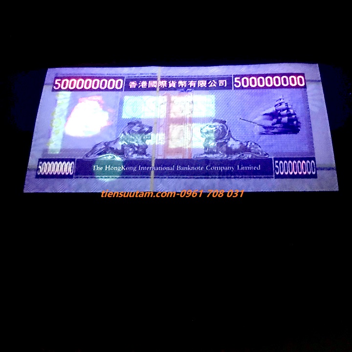 Mặt trước và mặt sau Tờ Lưu Niệm 500 Triệu Dola Hong Kong Hình Sư Tử