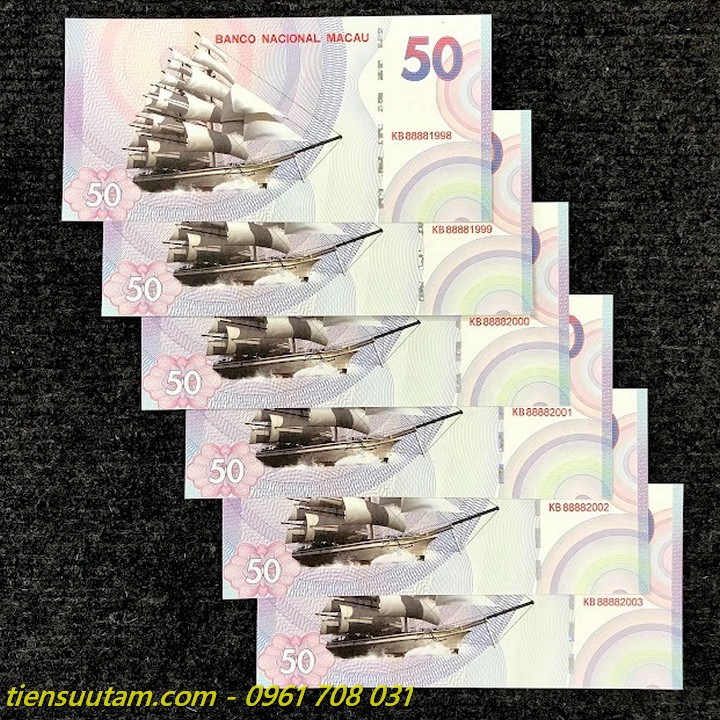 Đặc điểm nổi bật: Tiền Lưu Niệm Macao Thuận Buồm Xuôi Gió Seri Năm Sinh là một tờ tiền lưu niệm chất liệu bằng giấy, có dây bảo an biến đổi quang học dọc tờ tiền, phát quang dưới tia UV tím để ra các hình bảo an chìm. Hình ảnh chiếc thuyền buồm căng gió lướt trên mặt biển thường gắn liền với câu chúc " Thuận buồm xuôi gió " dành cho những người làm ăn kinh doanh hay đang tiến bước trên đường quan lộ được mọi việc suôn sẻ, thuận lợi, phát tài phát lộc, vạn sự như ý tiền tài đầy túi....Tiền chỉ dùng để lưu niệm, không có giá trị sử dụng. Làm phong phú hơn cho bộ sưu tập của bạn và cũng là món quà tặng bạn bè người thân độc đáo và thú vị.