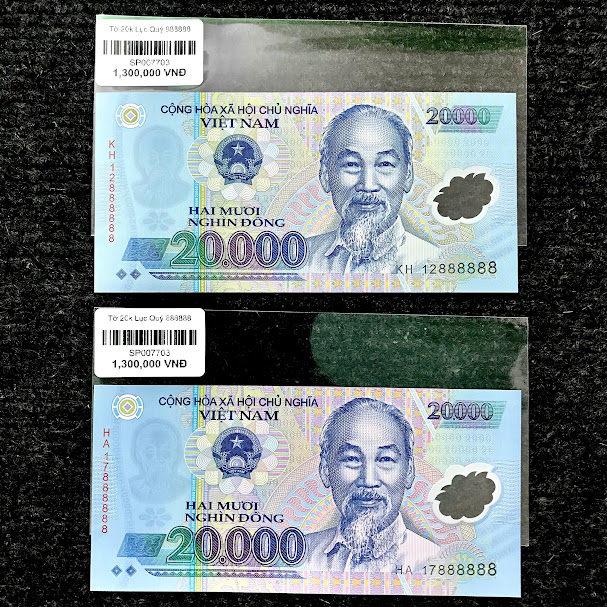 Tờ 20.000 và 10.000 lục quý 6, lục quý 8 ; 20.000 lục quý 6 số kép đầu, 10.000 lục quý 8 số kép đầu