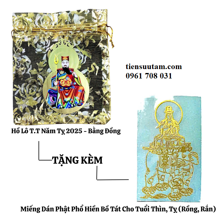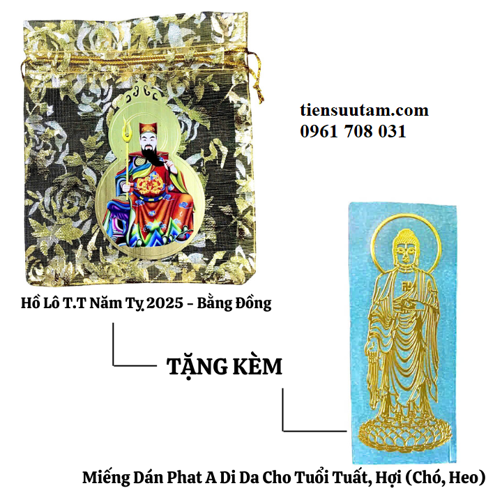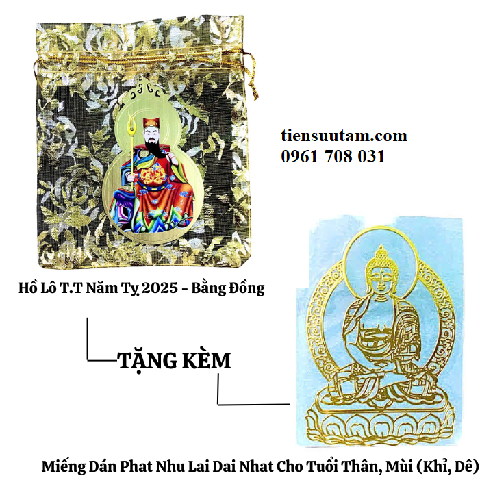 Tên Sản Phẩm: Túi Hồ Lô Thái Tuế Năm Tỵ 2025 Và Miếng Dán Phật Bản Mệnh Cho Tuổi Dần Thân Tỵ Hợi