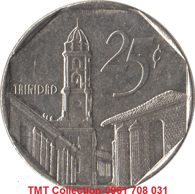 Mặt trước: Huy hiệu Cuba với tấm khiêng có cây dừa mặt biển vùng nhiệt đới đầy nắng. Năm phát hình đồng tiền ở dưới.