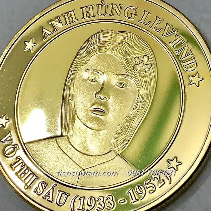 Kích thước: Xu Lưu Niệm Cô Sáu Côn Đảo Mạ Vàng đường kính 4cm