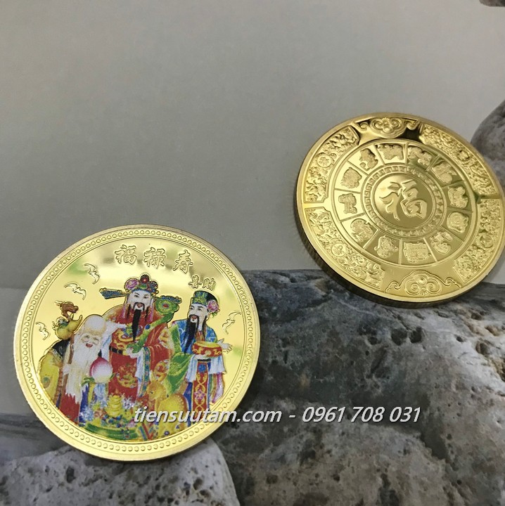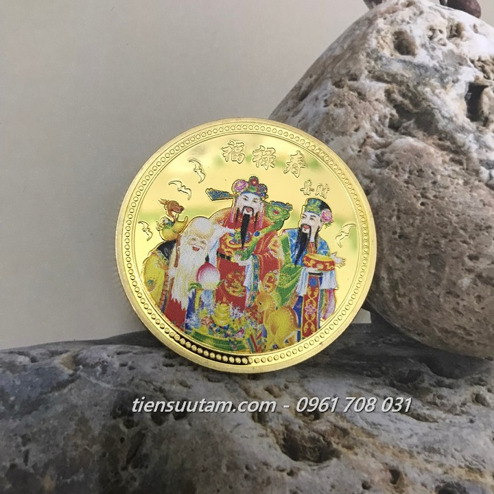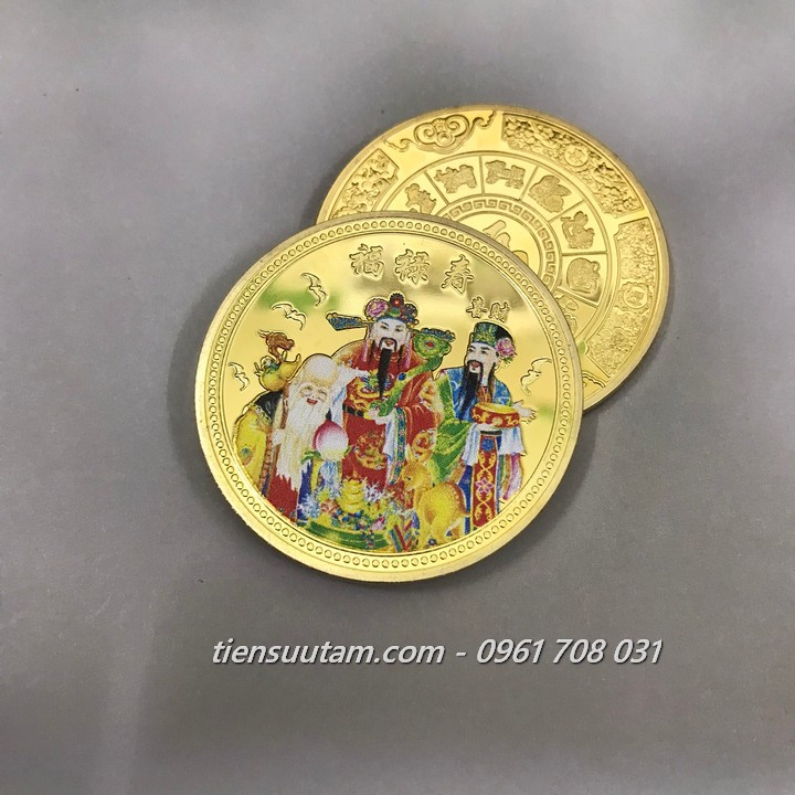 Tên sản phẩm: Xu Lưu Niệm Phúc Lộc Thọ Mạ Vàng In Màu