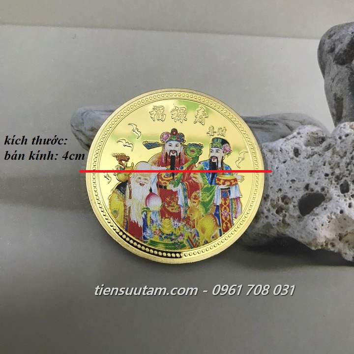 Kích Thước Xu Lưu Niệm Phúc Lộc Thọ Mạ Vàng In Màu