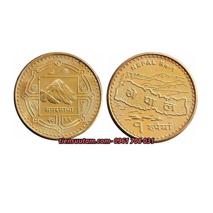 Mặt Sau: Bản đồ Nepal với các ngọn núi và giá trị đồng tiền bằng tiếng Anh ở trên và bằng tiếng Nepal bên dưới