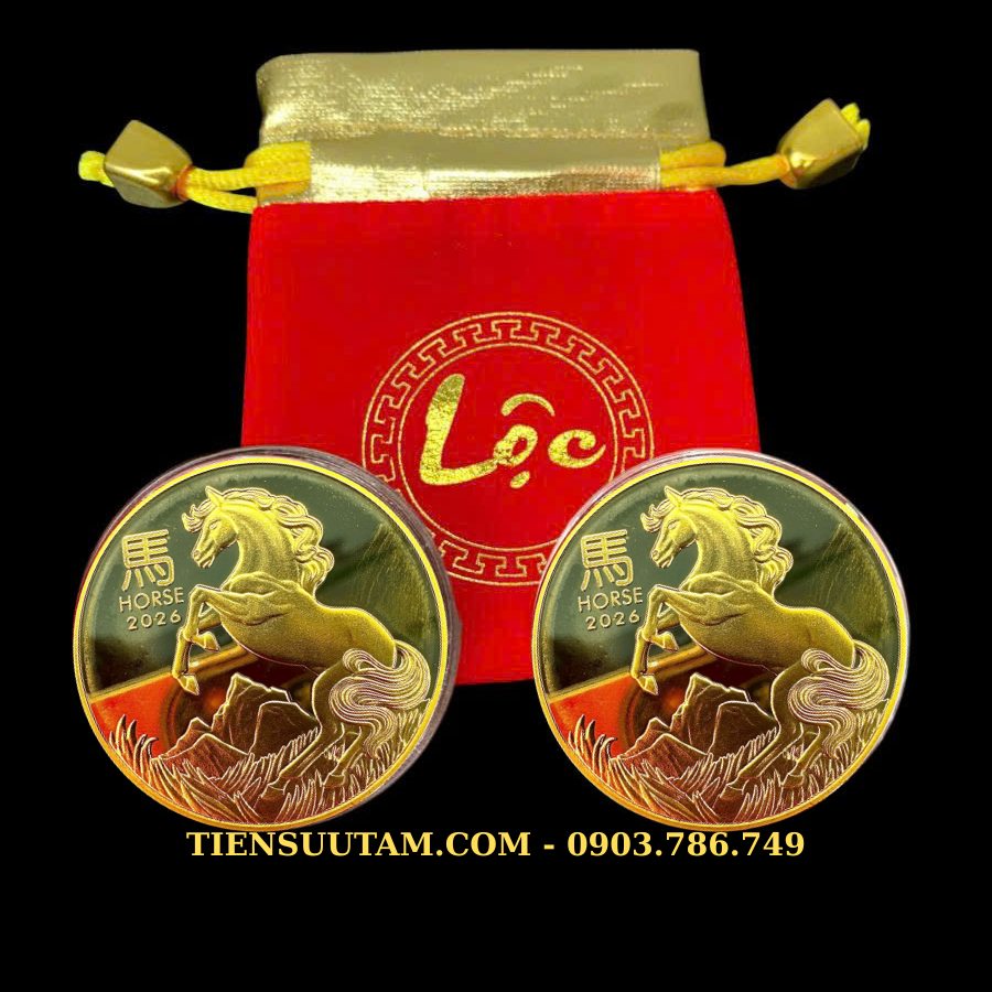 Mỗi Xu Úc Hình Con Ngựa Mạ Vàng được đặt trong hộp nhựa acrylic trong suốt, giúp bảo vệ khỏi trầy xước và giữ nguyên độ sáng bóng lâu dài. Bộ sản phẩm đi kèm túi gấm Lộc đỏ – biểu tượng của may mắn và tài lộc, thích hợp làm quà tặng Tết Bính Ngọ 2026 hoặc vật phẩm trưng bày trong gia đình, cửa hàng, văn phòng.